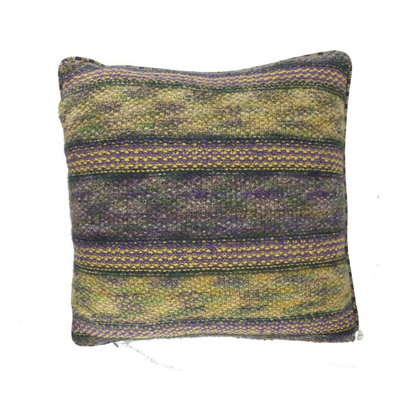 Woven Silk Necktie Pillow in plum and sage hues backed with a 100% wool in a nubby knit in colorful stripes of plum, green and butterscotch. Piping is out of silk. Mitered neckties include a lovely Polo by Ralph Lauren necktie which...